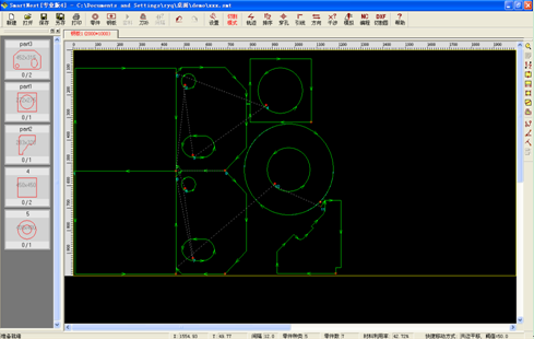 5、先進(jìn)的全自動(dòng)套料功能。采用新的計(jì)算智能技術(shù)和相關(guān)科研成果,對(duì)任意復(fù)雜形狀的異形零件進(jìn)行全自動(dòng)真實(shí)形狀套料,計(jì)算過程瞬間完成,優(yōu)化效果堪稱完美,材料利用率平均提高5%。