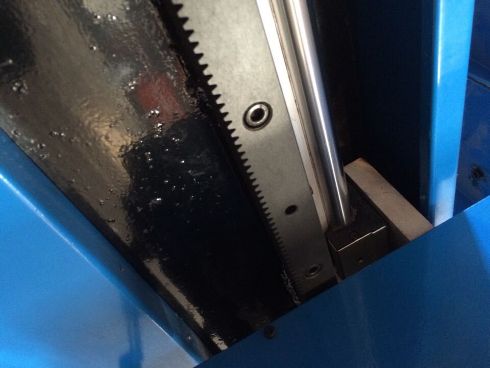 機器縱向采用高精度齒條與日本進口松下伺服電機結合使用,所使用的齒輪、齒條全部經過全自動新型淬火設備加以淬火處理,精密的加工工藝,使其精度達到了GB/T100967-9級標準。同時用臺灣雙滾軸直線導軌保證縱向行走更加精準。縱向導軌經過精磨處理,表面平整度極佳,經久耐用。設備整機在12000mm/min高速下連續(xù)工作切割,機器移動精度高,機身穩(wěn)定無抖動。
