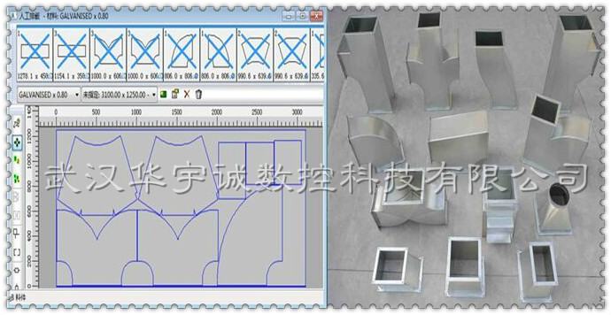 7、風(fēng)管專用軟件易掌握制造過程。只需跟隨簡單步履,選擇所需圖形,輸入?yún)?shù)值,然后幾何圖形已形成部件,準(zhǔn)備加工。